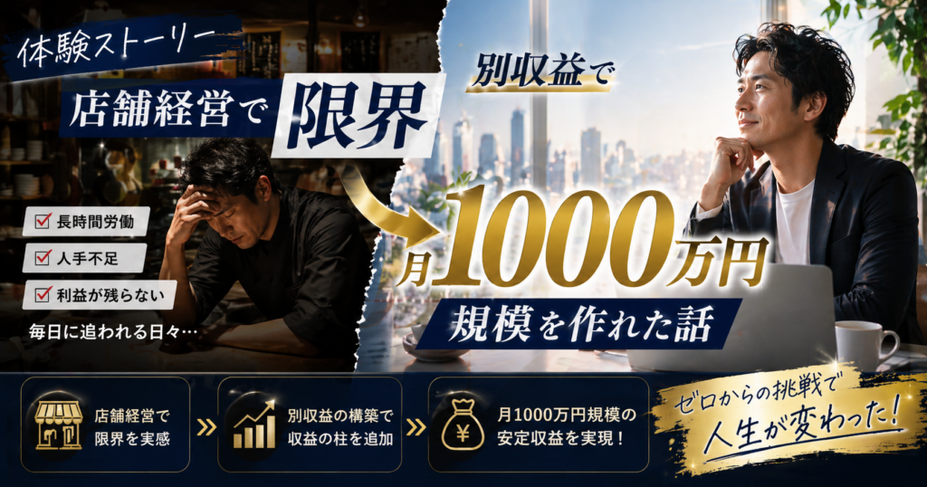 このブログは、渡邉JINが飲食店経営の限界を突破し、別の収益モデルを構築するまでの実体験をベースに運営しています。